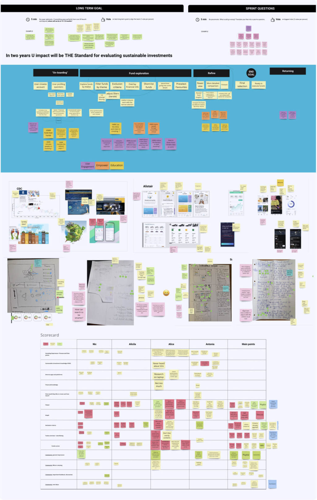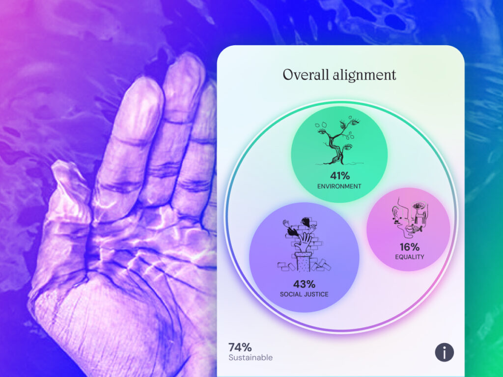 In testing, the colour coding across sustainability categories was immediately intuitive and became the foundational visual language; “the flower” boosted engagement from the start, landing better than expected. The playful tone was valued as unique from other financial platforms.