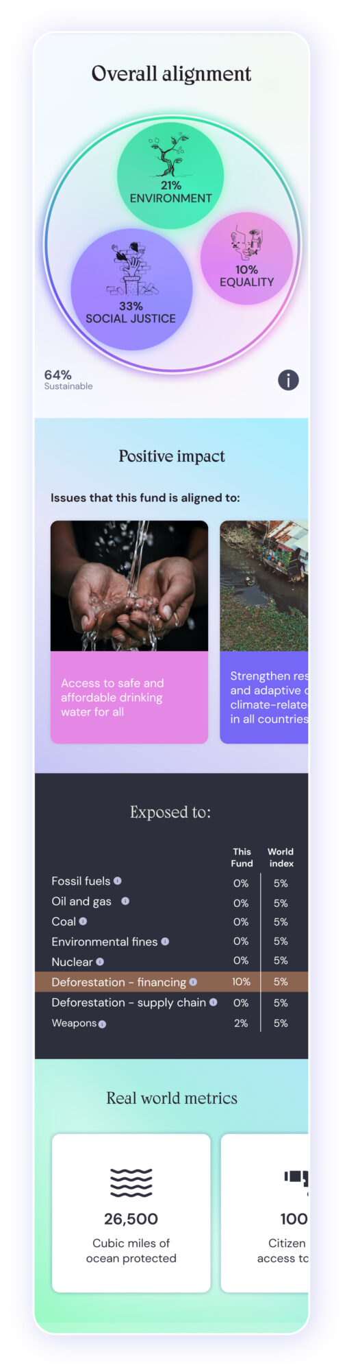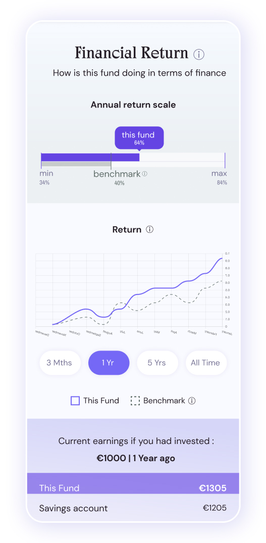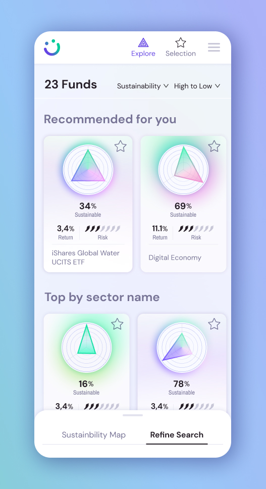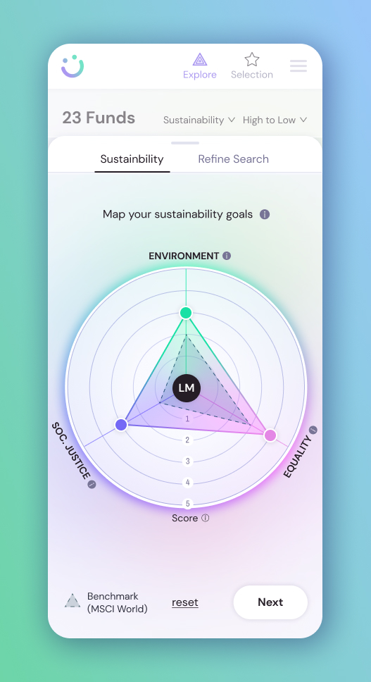 The client had developed a methodology to score how the funds align with the UN Sustainable Development Goals. They wanted to show this data in an engaging and trustworthy way, so users could truly understand what they were investing in and make decisions with confidence.